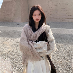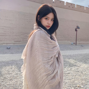 大西北旅游薄款文艺棉麻围巾女沙漠废土风褶皱丝巾氛围感纱巾披肩
