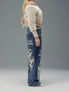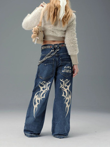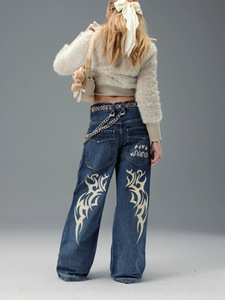 欧美跨境jnco印花牛仔裤女2025秋冬新款时尚baggy 直筒牛仔长裤