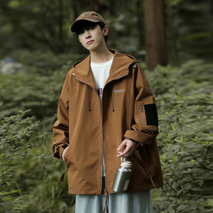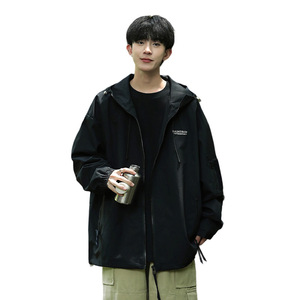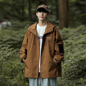 春秋季新款男韩版连帽字母刺绣长袖夹克潮户外有型外套百搭冲锋衣