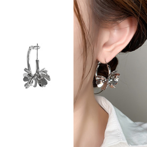 高级感镀真金花朵耳钉时尚个性简约耳环设计小众三朵花C字耳圈金