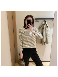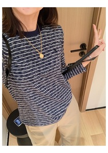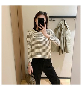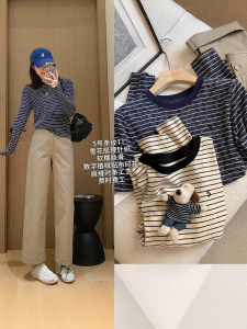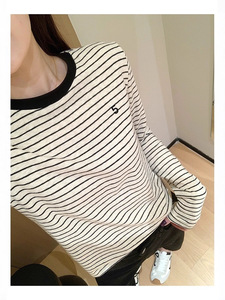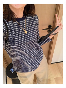 大叮自制5号条纹T!雪花肌理植绒贴布撞色长袖T恤早秋软糯轻薄上衣