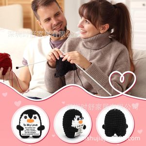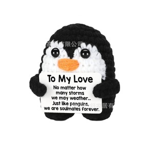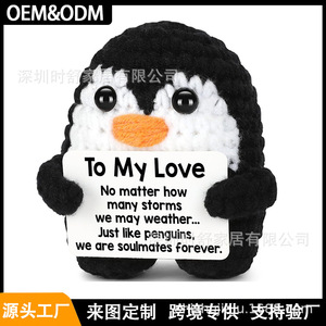 跨境爆款来图定制钩织正能量励志解压毛线玩偶手工钩针企鹅礼物