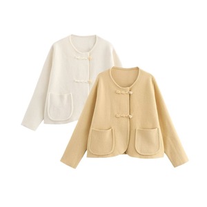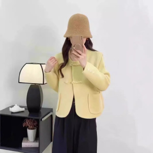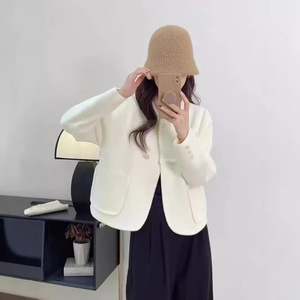 2025秋冬新款时尚短款爱心扣子针织外套女装小个子仿双面呢子大衣