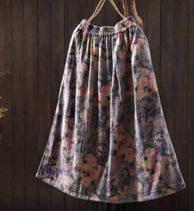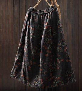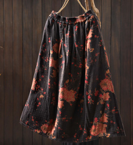 秋季新款 碎花半身裙女小个子大码显瘦遮肚棉中长款A字裙 99900