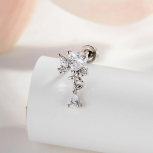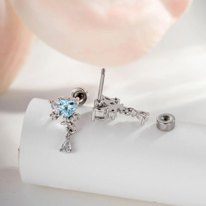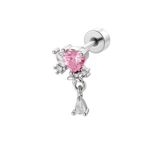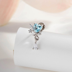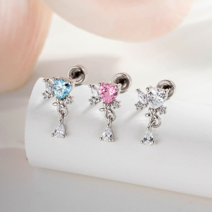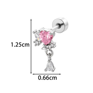 秋冬新款微镶精致爱心锆石水滴吊坠轻奢甜美气质软骨穿刺耳骨钉