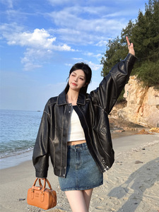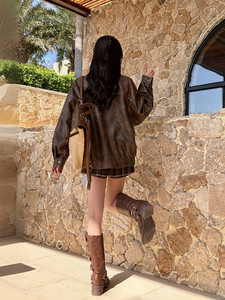 棕色皮衣女外套春秋季2025新款pu皮夹克美式复古酷飒风钟楚曦同款