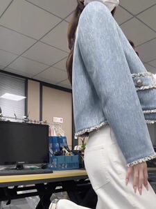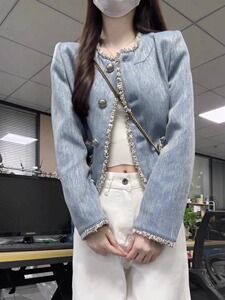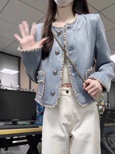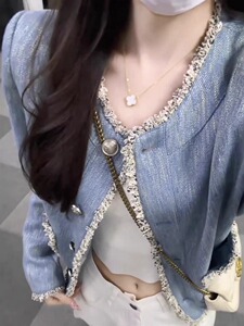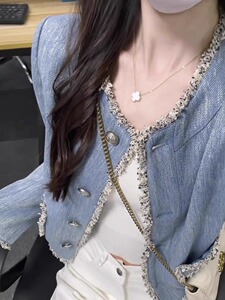 【意法】蓝色小香风花边短外套女2025秋冬新款高级感气质牛仔上衣