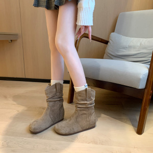 羊皮版~复古内增高勃肯短靴女秋冬百搭软底瘦瘦堆堆靴厚底马丁靴