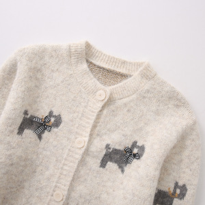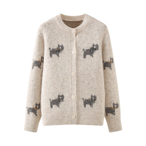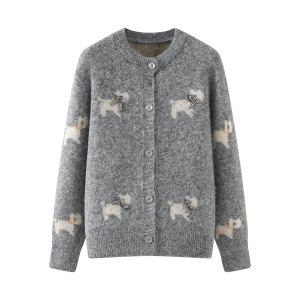 2025秋新款慵懒风洋气减龄毛衣外套女设计感小狗提花针织开衫