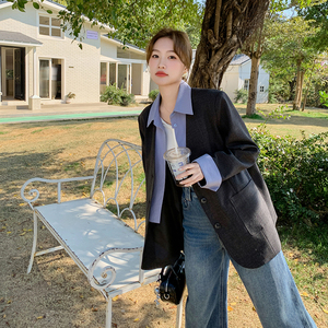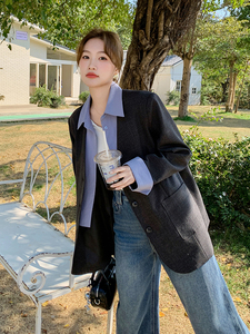 2025秋季新款时尚设计感假两件拼接西装外套女宽松气质感淡人西服