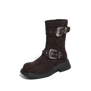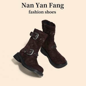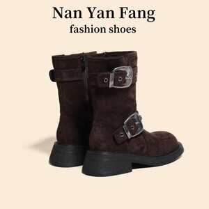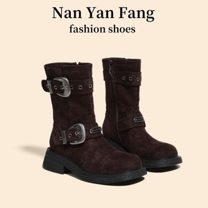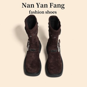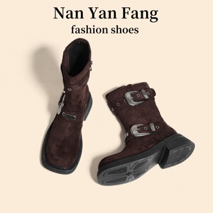 2025新款短靴女废土风方头马丁靴粗跟骑士靴西部牛仔靴复古机车靴