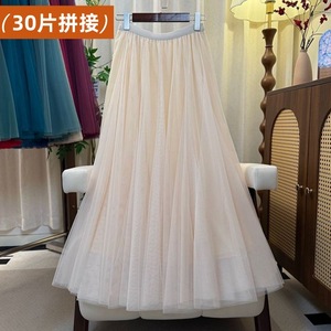 30片高端网纱半身裙720度大摆A字裙舞蹈长裙百褶仙女纱裙拍照演出