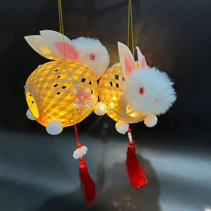 新款中秋节竹编灯笼创意手工花灯户外手提发光兔子儿摆摊工厂批发