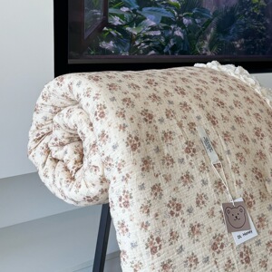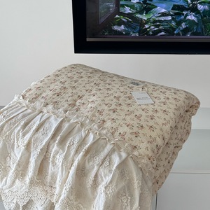 法式大花边田园小碎花春秋被双面全棉双层纱双人春秋被可机洗被芯