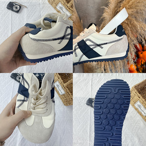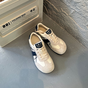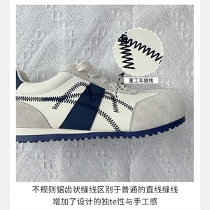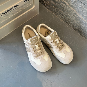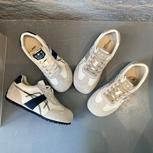 卡皮巴拉真皮德训鞋女2025秋季平底运动阿甘鞋休闲百搭刺绣小白鞋