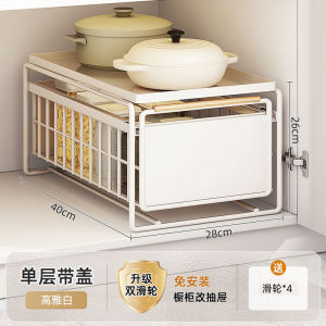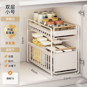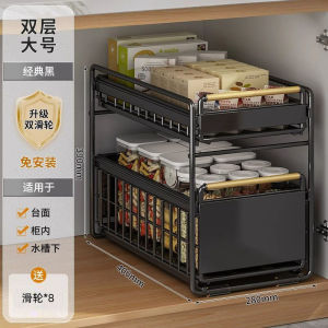 厨房橱柜拉篮下水置物架多功能碗碟调料收纳抽拉式分层架子铁艺