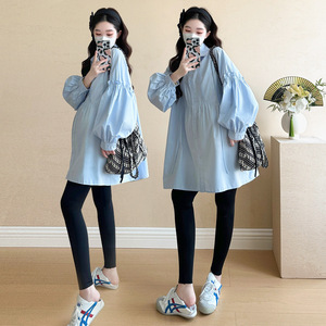 孕妇装秋装时尚休闲怀孕长袖衬衫宽松大码上衣2025新款秋季衬衣秋