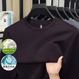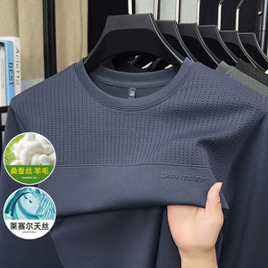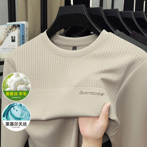 含羊毛桑蚕丝长袖卫衣男秋冬新款重工艺时尚宽松打底衫男士卫衣