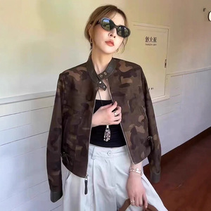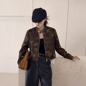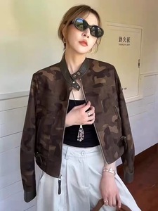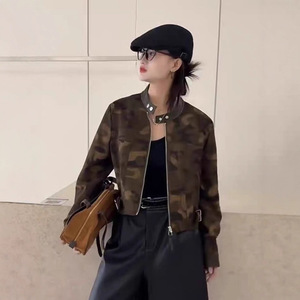 欧洲站2025秋季新款时尚立领迷彩短外套女宽松显瘦百搭夹克上衣女