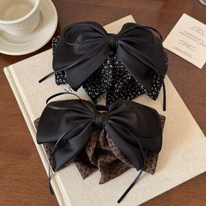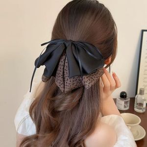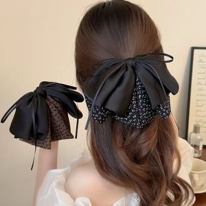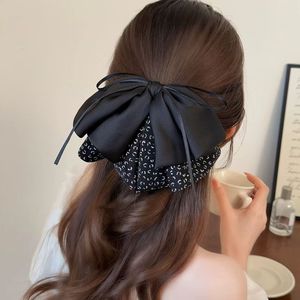 法式新款黑色蝴蝶结飘带小抓夹百搭半扎马尾夹爆款少女鲨鱼夹头饰