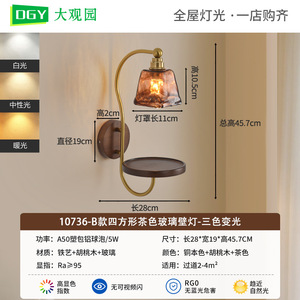 【B款】四方形茶色玻璃-三色变光-全光谱