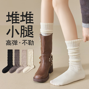 秋冬多巴胺袜子女长筒袜ins潮纯色日系薄款堆堆袜芭蕾风配小皮