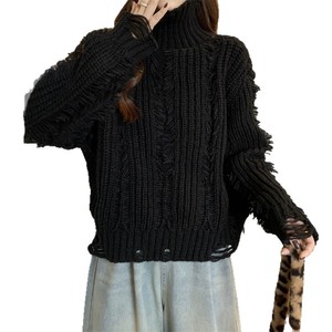 2025秋冬季新款韩系休闲针织衫上衣设计感流苏破洞高领毛衣女套头