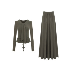 长袖版【青灰色】高个子两件套 上衣+松紧腰半裙【中高弹】
