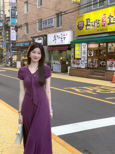 短袖版【紫色】小个子两件套 上衣+松紧腰半裙【中高弹】