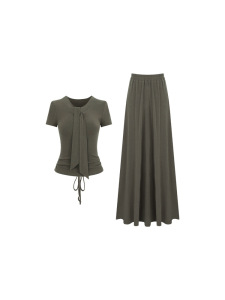 短袖版【青灰色】高个子两件套 上衣+松紧腰半裙【中高弹】