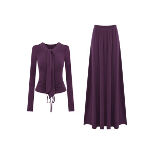 长袖版【紫色】高个子两件套 上衣+松紧腰半裙【中高弹】