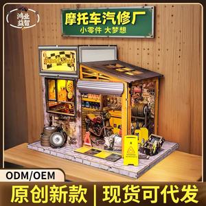 摩托汽修厂diy小屋微缩场景摆件艺术屋迷你建筑模型手工立体拼图