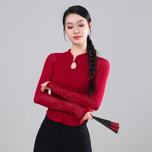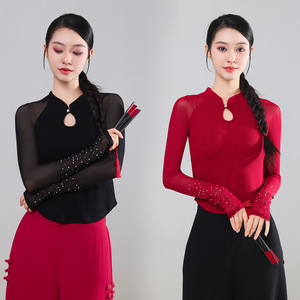 气质古典舞服修身拼接纱袖上衣现代舞民族舞服装练功服女250822