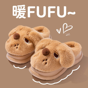 2025秋冬新品情侣小狗棉拖鞋女防滑室内卡通毛毛拖鞋男士居家拖鞋