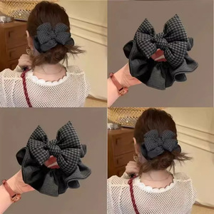 格纹蝴蝶结发圈韩系高端发饰头绳2025新款质感布艺肠圈发绳女