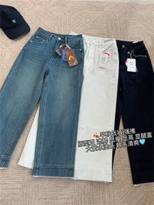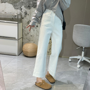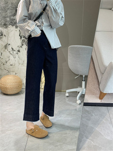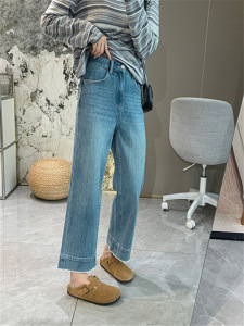 早秋战裤四面弹高腰显瘦直筒牛仔裤女九分窄版垂感小个子阔腿裤新
