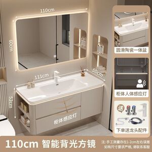 智能镜柜款-110cm-易清洁陶瓷一体盆+侧边收纳