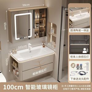 智能镜柜款-100cm-易清洁陶瓷一体盆+侧边收纳