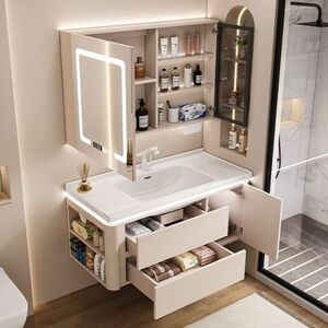 智能镜柜款-90cm-易清洁陶瓷一体盆+侧边收纳