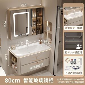 智能镜柜款-80cm-清洁陶瓷一体盆+侧边收纳