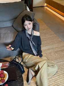 2025秋冬新款韩系设计感露肩百搭显瘦宽松气质女装毛衣针织衫上衣