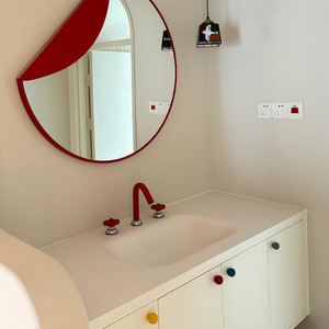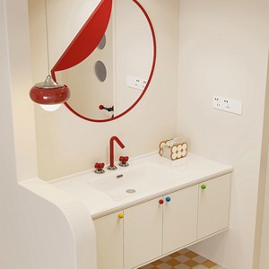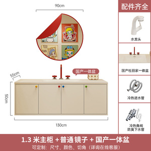 奶油风陶瓷一体盆橡木多巴胺智能浴室柜组合卫生间可爱甜美洗漱台