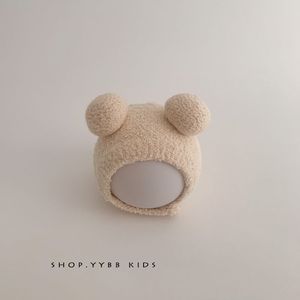 韩版ins秋冬新宝宝护耳帽保暖防寒帽舒适婴儿双球软糯包头帽潮