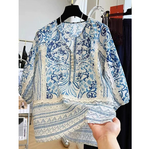 2025年秋季新款女装设计感小众蕾丝印花衬衣时尚高级感漂亮上衣潮