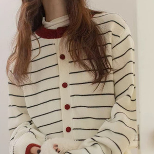 韩系2025秋冬新款条纹慵懒风软糯毛衣针织开衫漂亮女洋气休闲上衣