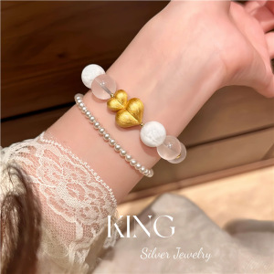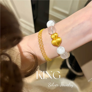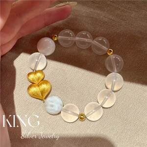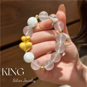 似水倾心手串 | 奶白晶雪花幽灵拉丝屁桃新中式复古国风纯银珠串
