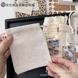 ins风高颜值棉麻束口袋网格小卡打包礼品袋博主同款平价diy装饰袋