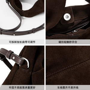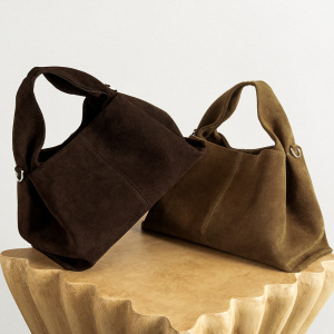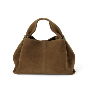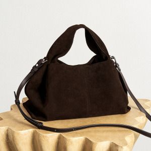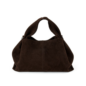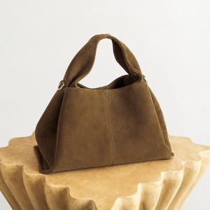 早秋新品麂皮褶皱手提托特包跨境欧美复古通勤小拎包广州真皮女包