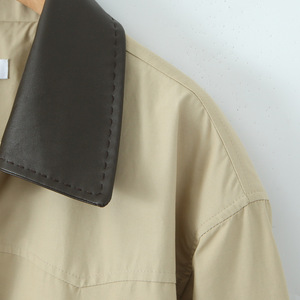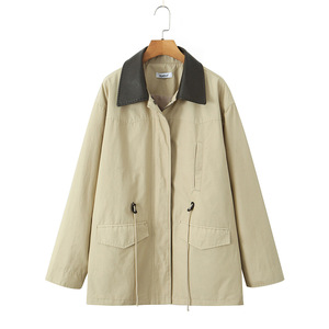 跨境欧美女装速卖通爆款时尚复古休闲拼色皮领风衣外套
