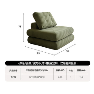 小户型豆腐模块懒人沙发跨境极简奶油风布艺沙发无扶手单人沙发椅